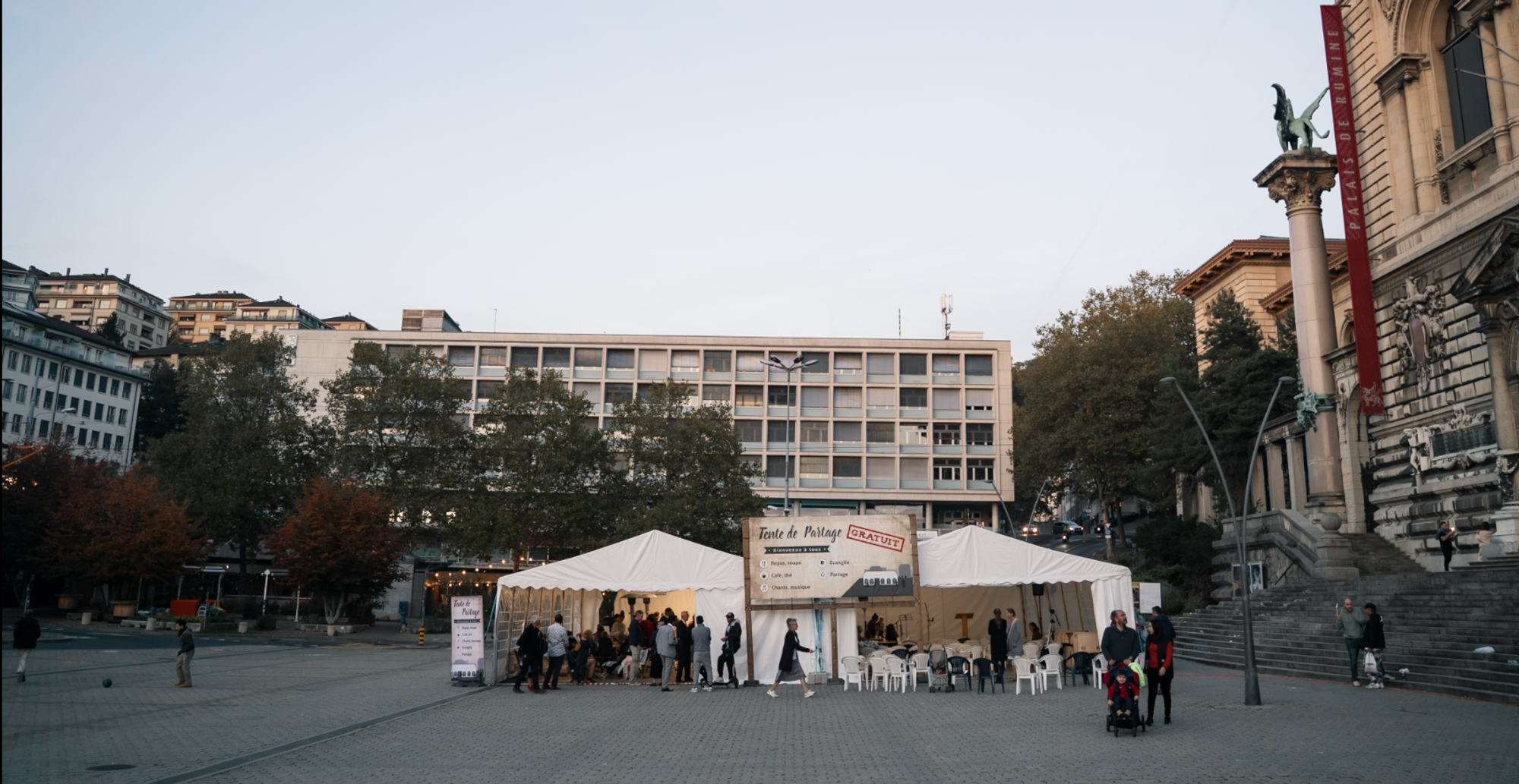 La Tente de Partage est là pour tout cela. Partager un repas gratuit à l’abri entre amis et prendre du temps pour réfléchir sur notre spiritualité. L'action est menée par divers chrétiens de différentes régions de la Suisse romande sans représenter une église ou organisation spécifique.